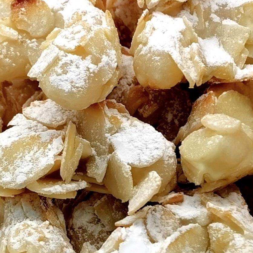 Ingredienti: mandorle, zucchero, albume d'uovo, vaniglia e limone potrebbero contenere tracce di glutine o altra frutta a guscio, adatto intolleranti a frumento latte e lievito.